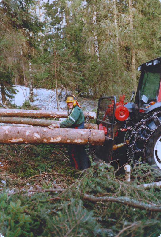 Jørgen Skjeldrum lunner tømmer i 1997.