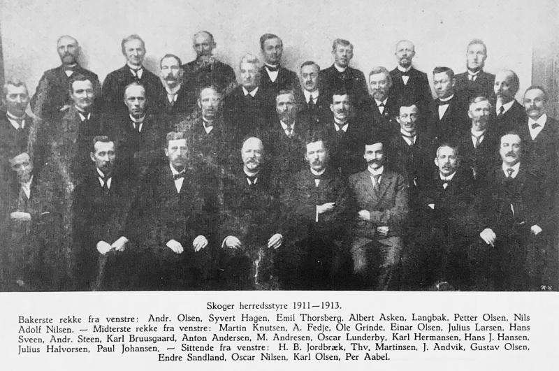 “Skoger Herredsstyre 1911 - 13,” Skoger og Konnerud historielags bildesamling, besøkt 27. februar 2026, https://www.skhist.nettsidetesting.no/items/show/261.