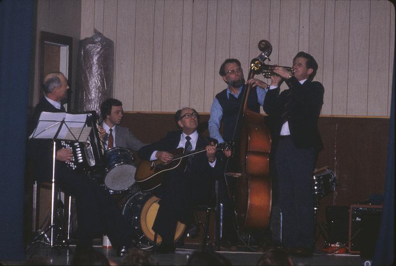Fra jubileumsfesten med revy Kåre Ryggetangens orkester. Kåre med trekkspill.