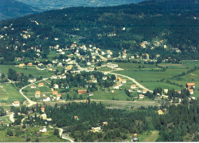 Gården midt på bildet er Langeland Den er helt borte nå (2015), men den lå mellom Verksveien og Brokkvollveien. Eier var Gustav Langeland (1877-1961). Han var gift med Maren Anette f. Johansen (1872-1943. De fikk barna Karsten (1901-1970), Borgine f. 1907, Arthur, (1909-1959) og Asta f. 1913. Gården hadde g.nr. 80 br nr. 14 og 15. Låven (uthuset) helt til høyre i bildet tilhørte Simen Langeland d. 1931. Han var gift med Hansine d. 1938. De hadde ingen barn. Gården står oppført som Langeland br.nr.11 i Skogerboka fra 1931.
