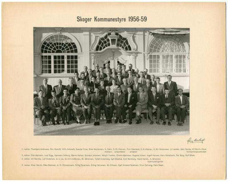 “Skoger herredsstyre 1956 - 1959,” Skoger og Konnerud historielags bildesamling, besøkt 26. februar 2026, https://www.skhist.nettsidetesting.no/items/show/2839.