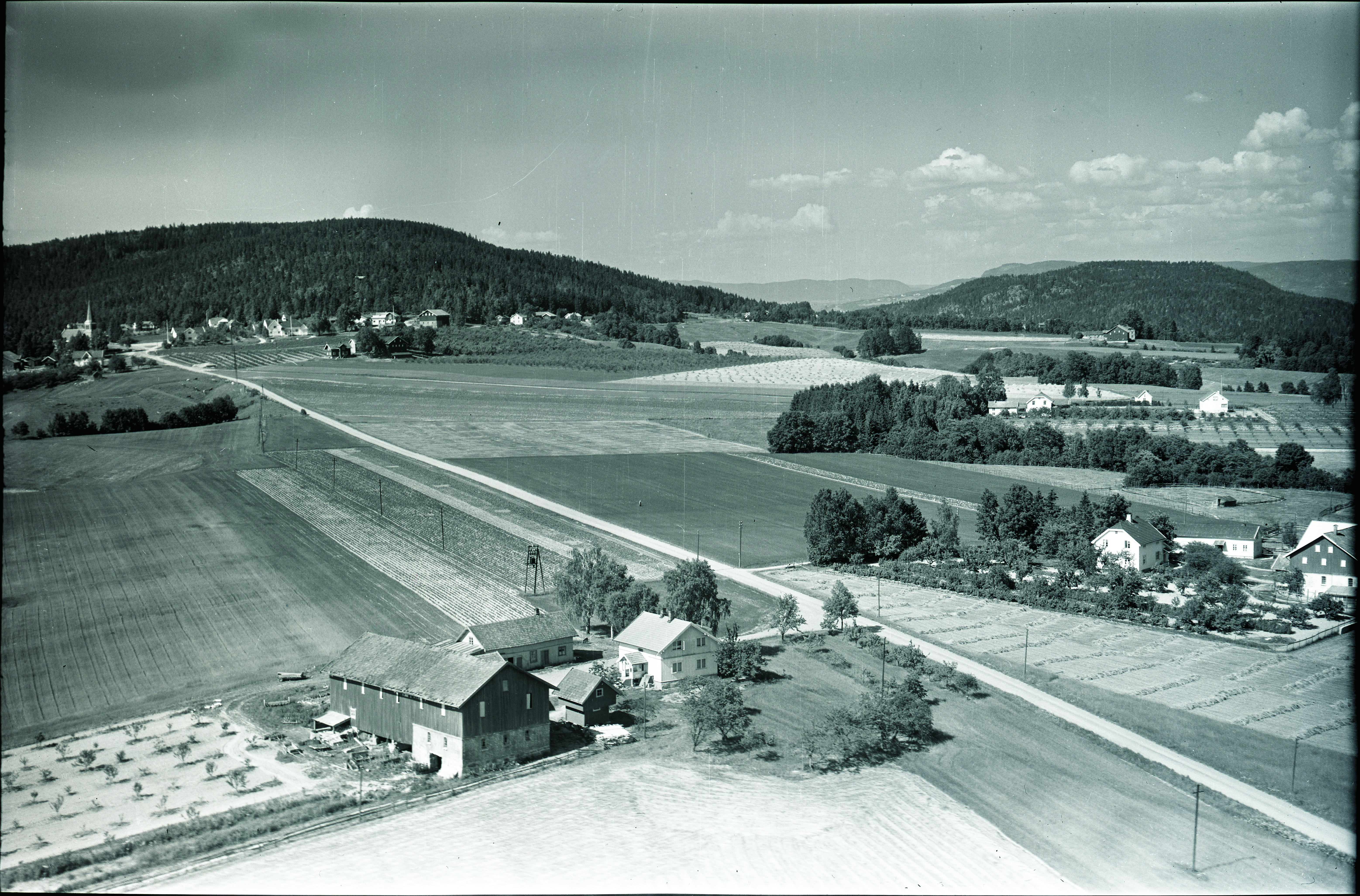 Bolig og eiendom, Natur og milj?, Bondeg?rd, Jordbruk, Flyfoto, Kulturlandskap, Kirke, Skog