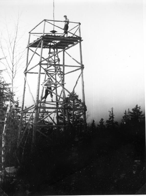 Tårnet ble satt satt opp i siste halvdel av 1930-årene. Det skulle brukes i forbindelse med kartlegging av skogen der inne. Profesjonelle fotografer tok bilder fra toppen av tårnet som var ca. 10 meter høyt. Det er et trigonometrisk punkt på stedet. Ole Furuvold f 1890 d. 1966) var en av de som var med og bygde tårnet. Bildet er tatt i 1950. Tårnet råtnet ned og er nå helt borte (2013). Det ble også satt opp et liknende tårn på Ryggetang Slettås, men dette var litt lavere Det var muligens Norges geografiske oppmåling (NGO) som var ansvarlig for tårnet. Begge tårn ligger på grensen mellom Skoger og Sande.