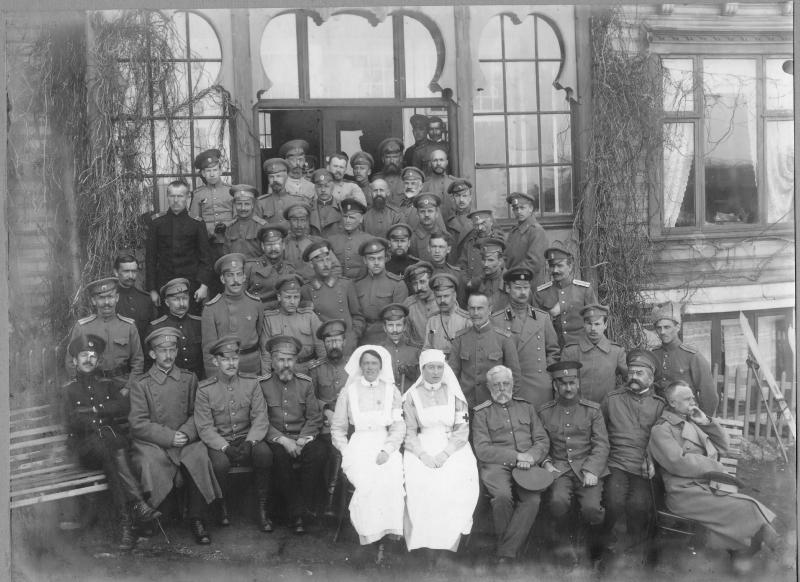 Rusiske krigsveteraner på trappa til Konnerudkollen Turisthotell. De bodde her ca. ett år. Sykepleierene var norske. Russerene ble skutt da de kom tilbake til Russland fordi de hadde latt seg ta til fange. (Karen Sveen). Konnerud Sanatorium ble bygget på gården Eskerud i 1896. Byggherre var: Grosserene Brecke, Rudolp og Andersen. Senere overtatt av hotelleier Jens Henriksen fra Tønsberg som utvidet til hotell. Etter første verdenskrig omdøpt til Konnerudkollen Turisthotell, drift til ca. 1940. Etter krigen ble hotellet benyttet som en underavdeling av Univerisitet i Oslo for 107 norske kostholdsstudenter som studerte engelsk over to semestre. De bodde på hotellet sammen med sine lærere. Denne form for college var en ny form for universitet i Norge. Kort varighet, fordi hotellet ble solgt til Europahjelpen i 1949 som mottaksstasjon for flyktninger .Siden brukt til kursted. Hotellet ble ombygd til det ugjenkjennelige i 1950. Staten overtok hotellet vedrlagsfritt i 1951 og det ble brukt som en underavd. til Lier sykehus i 1956. Hotellet brant sommeren 1967.