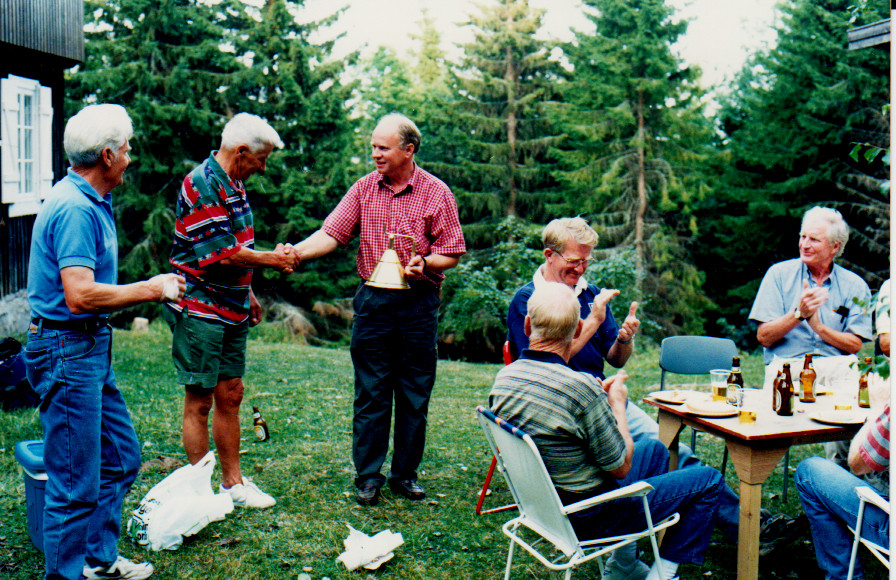 Foto: Reidar HaldenDen første SKH Dugnaden (Juni 1996) på Rønehue etter at en 10 årsavtale om leieforhold var inngått med Selvik Bruk.Fra V: Gunnar Kaspersen,Øyvind Pedersen og Per Hansen(i vinduet)Roar Thoresen, Helge Furuvold, Kjell Amunsen og Olaf Nilsen