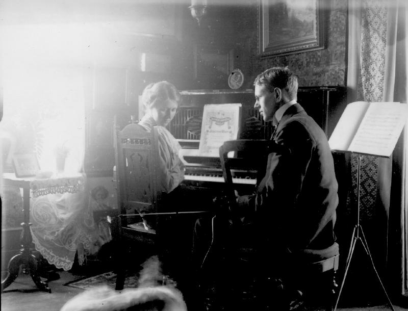 Ingeborg og Alf Bjerknes i stuen på Stormoen. Ingeborg var piano-lærerinne