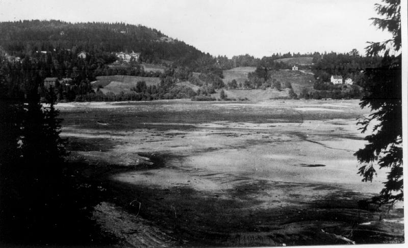 Stordammen nesten uten vann sommeren 1930. Hotellet i bakgrunnen