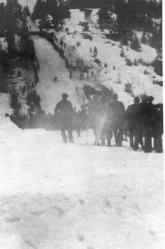 Konnerud, Konnerud Idretslag, Konnerudkollen, Skihopping, VinterBilde tatt: ca.1920Opprinnelig fotograf: Hans JensenKlausul: Oppgi fotograf