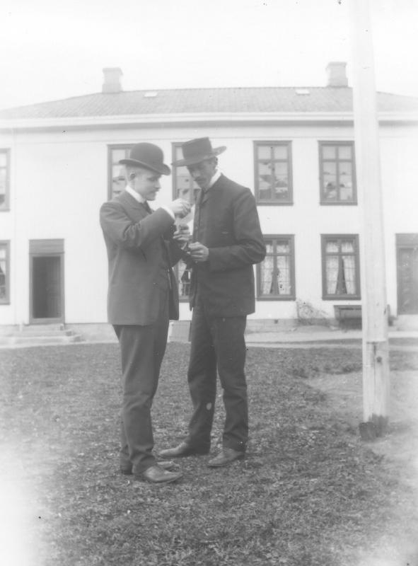Artur Hillestad og Ingvald ute på gårdsplassen mai 1907