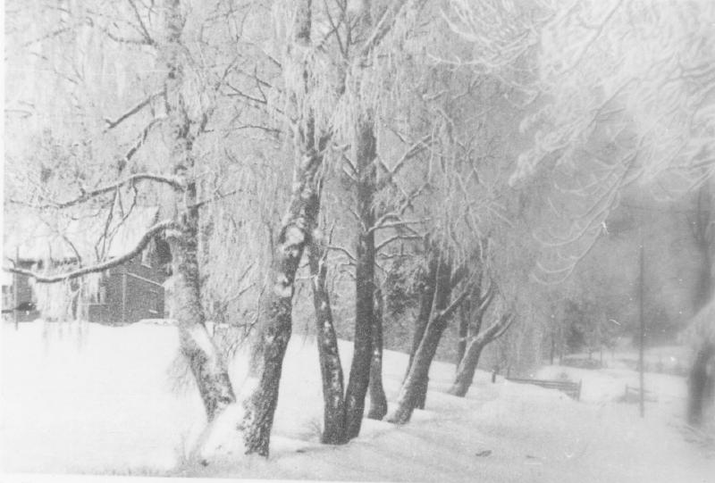Rimfrost i de hundreårige træe. Kort skrevet 07.01.1917 av Ragnhild Barlag