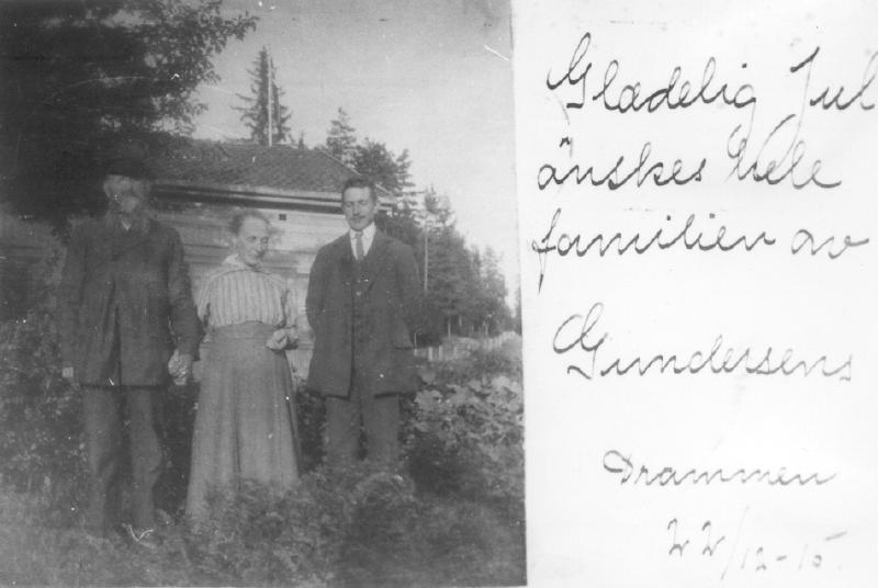 Mor og far Skalstad med sønnen Bjørn. Julekort datert 22.12.1915