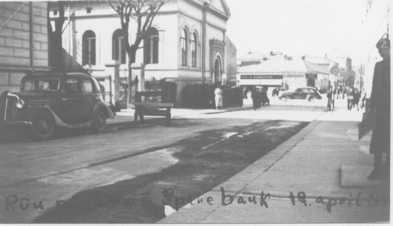 Nedre Torgt. mot Bragernes Torg, - Krigsdagene 1940 Folk i kø utenfor Drammen Sparebank