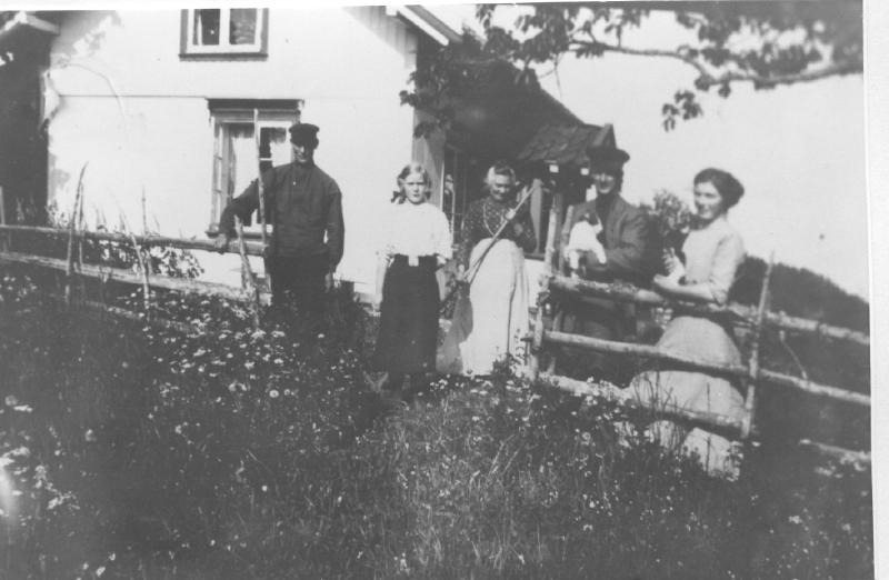 Gruppe foran Stubberudv. 180 ( Rolighet ) Fra v. Johs Halvorsen , ukjent,Marie , Anton og Marie Halvorsen D.Y. ( Miss Mary )