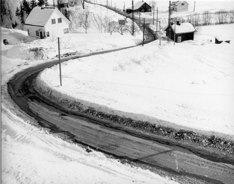 Skoger, Snø, Svingen, JarlsbergveienGnr/Bnr: SkogerBilde tatt: sannsynligvis i 1960-åraOpprinnelig fotograf: Reidar HaldenKlausul: Ingen
