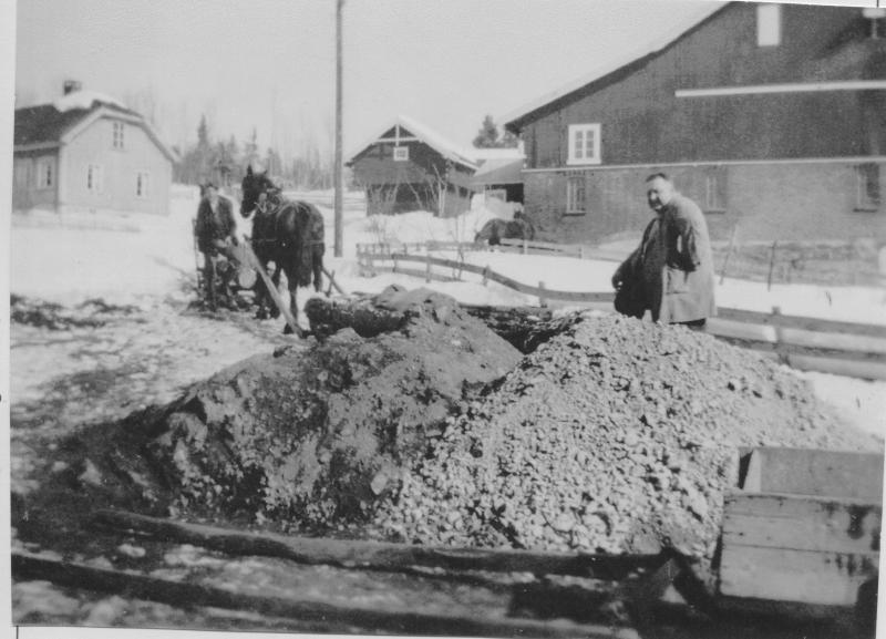 Til h. Knut Røed - Flåtan -- ukjent hestekjører med tømmer til Skjeldrumsaga.