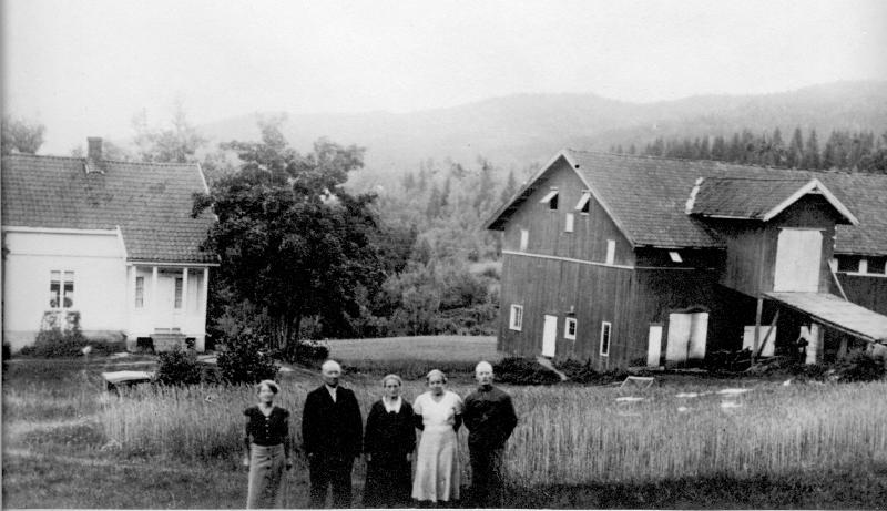 Fra v. Ingrid Martinsen (gift med Rudolf Martinsen) f. Engen (1909-2001). Hennes foreldre Martinius (1877-1961) og Anna Engen. Deres svigerdatter Alfhild, født Myhre (1902-1992) fra Sem gift med sønnen Einar Engen (1907-1969).( Se ellers bilde nr, 135) Ingrid og Rudolf Martinsen var barnløse. Sønn til Alfhild og Einar, Gunnar Engen ble gift med Ellen Steen, de fikk barna Tore, Stein og Randi Martinius hadde en bror, Håvald som ble gift med Ella Embeland og de bosatte seg på Ingvaldsåsen ved Skoger nye kirke