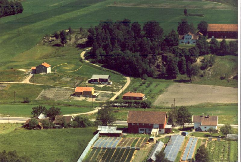 Alf Mogensens gartneri, Lindumhaugen 38/6, i forgrunnen, Jørgen Juels Lindum 38/1 i bakgrunnen.