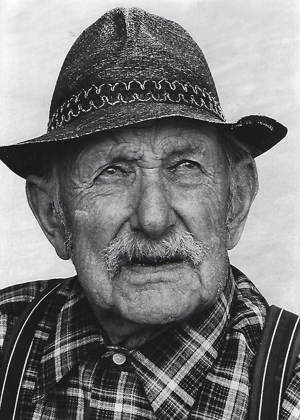 Bjørn Skalstad med hest. Dette bilde henger innrammet i stor format på Christinelund. Det er en gave fra Bjørn Skalstad til Ørnulv Backe.Hans datter Synnøve Sandbekk har forært bildet til Skoger Historielag, med annmodning om at det skal henges på Christinelund