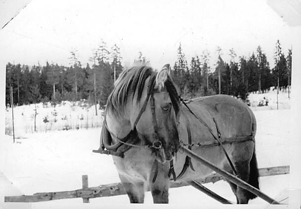 Den trufaste " Gråen " som dro stolpene ut i marka der hvor linja skulle gå.
