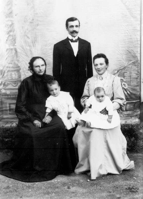 Hans kone Bertha Nilsen med Astrid på fanget. Olaf Nilsen sitter på bestemors fang. OLAF NILSEN DREV GRAMSBORG LANDHANDLERI