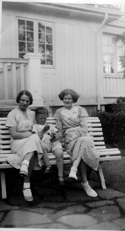 Utenfor Bernås. Til v. Hansine Bernås ( Regstad) og Ove