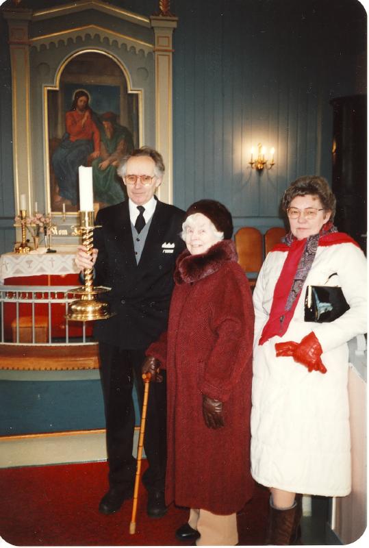 Kjeld Jegh , Han var kirketjener med lysestaken som var gave fra Thorbjørn Engebretsen, organist i Konnrud Gamle Kirke. Inga Josefine Nielsen ( f.Pettersen) og Karen Sveen. Kjeld Jegh var fra Danmark. Inga Josefine Nielsen (f.Pettersen 01.07.1904) Bodde på Solliberget som ligger i Dalenveien. Mor til Anne-Lise Møller-Nilsen. Karen Sveen er aktiv i Konnerud menighet som organiserer tilstelninger i kirken f.eks. kirkekaffe. Sammen med Karin Aas var de radrapar ved severinger og matlaging på sanitetshuset.