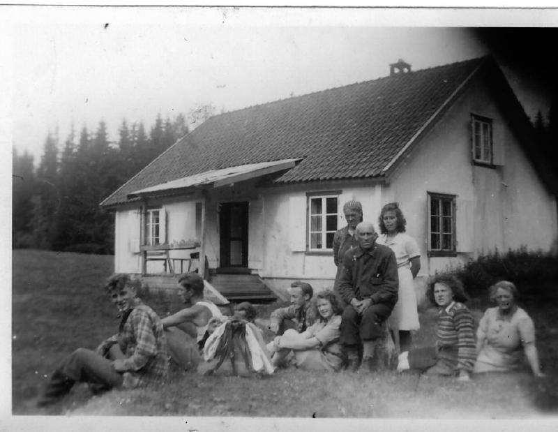 Fra v.: Egil Thorsberg. Martin Håkonsen, nn. Øyvind Rustand ( bror til Olav ) Ragnhild Gomperud. Martin Haugen. Emma Gravdal ( bak). Eli Gravdal( g. Treholt - bak. Kari Prøis ( g. Rustand) og Ingeborg Ekholt
