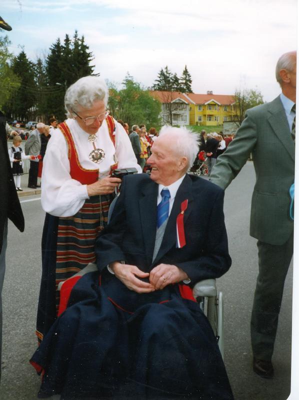 Solveig Markussen og Rolf delvis skjult. I rullestolen Olaf Kinnerud.