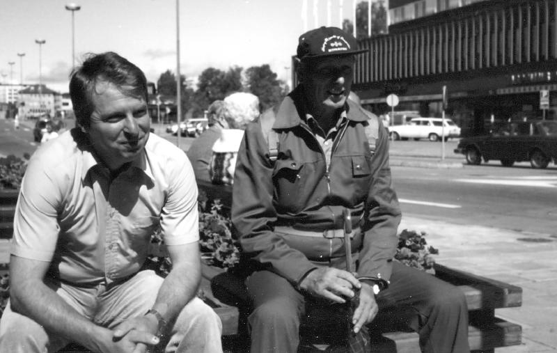 Tur til Sverige (Borlænge eller Falun). Fra venstre: Nils Otto Larsen og Kristoffer Halden.