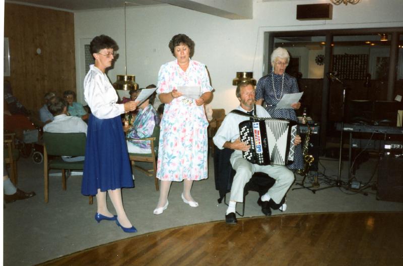 Sangerfest i Arbo Selskapslokaler ? Ukjent fra Svelvik, Jorunn Larsen, Einar Borgan og Arnlaug Ebbestad.