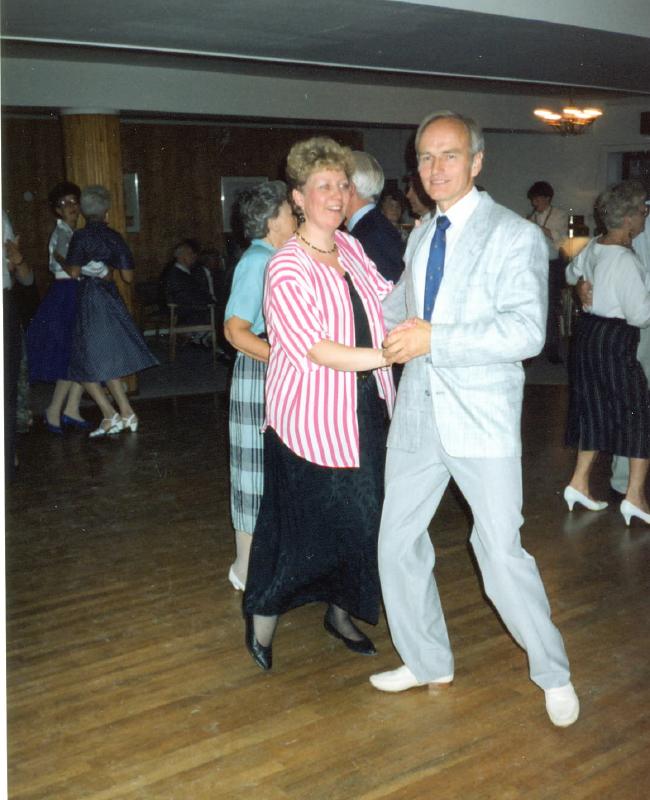 Sangkorfest i Arbo Selskapslokaler ?. Sigmund Furustad svinger seg på dansegulvet med ????.