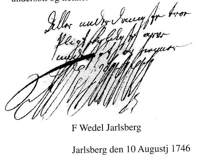 Grev Wedel Jarlsbergs underskrift