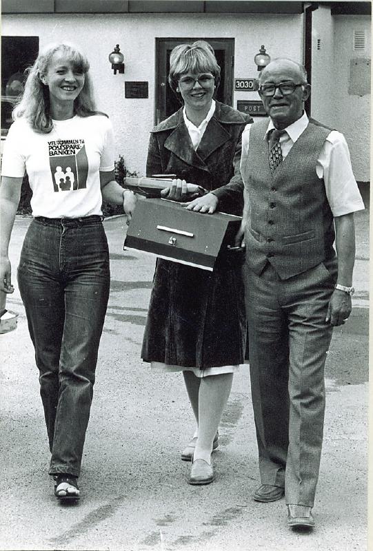 Bestyrer Toril Naper Hauge får i stand postrute til Fredholt sykehjem. Fra v.: Sissel Kollerud, Toril Naper Hauge og postmesteren på Konnerud, Berntzen.