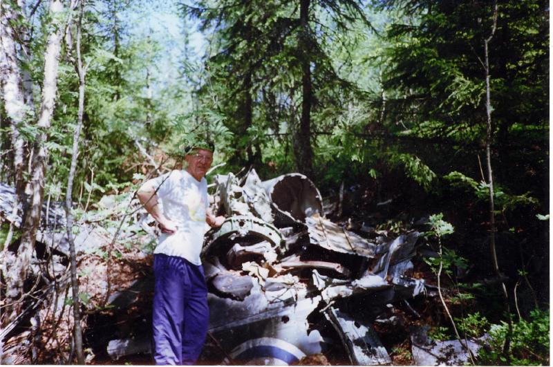 Arne Gullichsen ved flyvraket ved Vassmyra mellom Gutudalen og Viulsrud