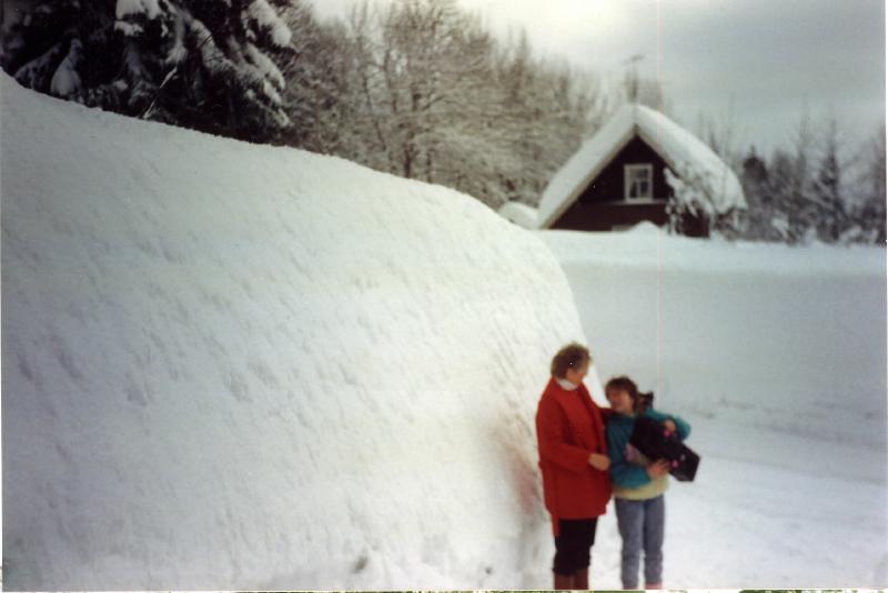 Toril Naper Hauge og datter Elin en marsdag i 1985 ved oppkjøringen til Stubberudv. 126a