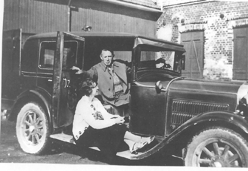 Dagmar og Julius Wold på gårdsplassen utenfor Skoger meieri