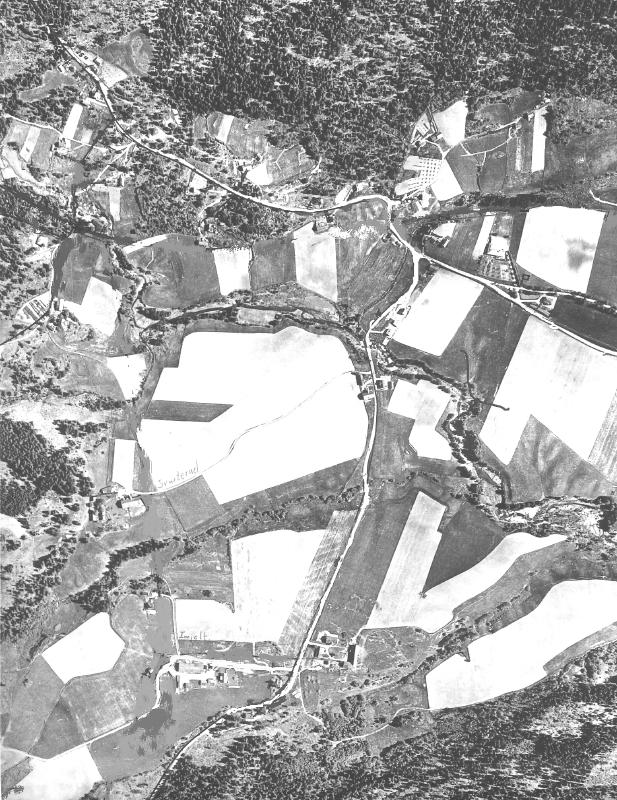 Flyfoto, Skoger, SvingenBilde tatt: 1950?Klausul: IngenImjelt Svarterud Snekkersrudbakken