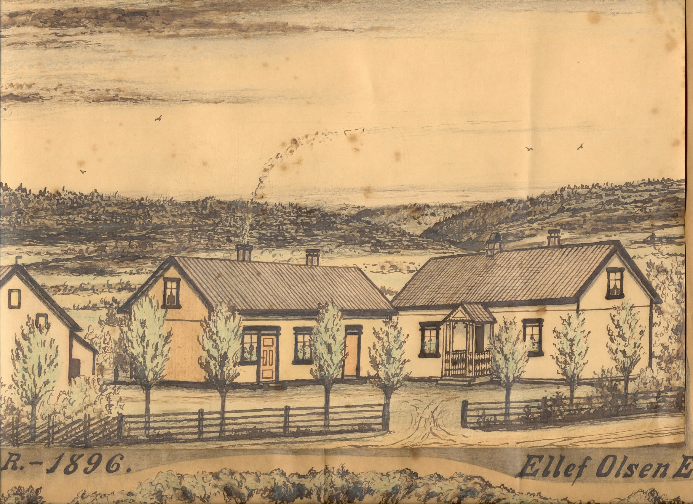 Foto av gammel tegning fra 1896 av Ellef Olsen Ekholt.