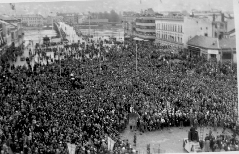 Bragernes, Drammen, Krigen 1940 - 1945Bilde tatt: Mai 1945Opprinnelig fotograf: Gustav HansenKlausul: ingen