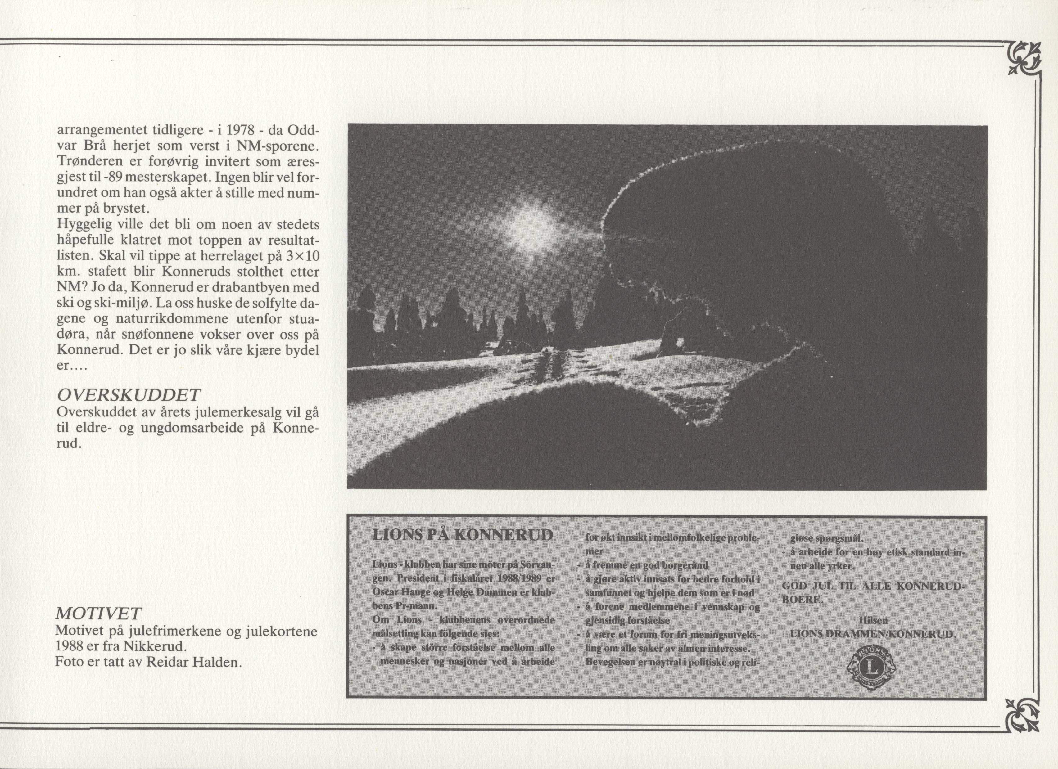 “Lions julemerke 1988,” Skoger og Konnerud historielags bildesamling, besøkt 26. februar 2026, https://www.skhist.nettsidetesting.no/items/show/5068.