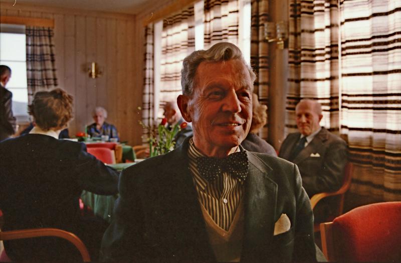 Bilde fra bygdebladet Skoger-nytts "Fem i Farta" i 1992, tatt på pensjonistforeningens møte. Tema var: Hvordan er det å bli pensjonist i Skoger? Intervjuobjekt: Henning Wincentz Løwer.