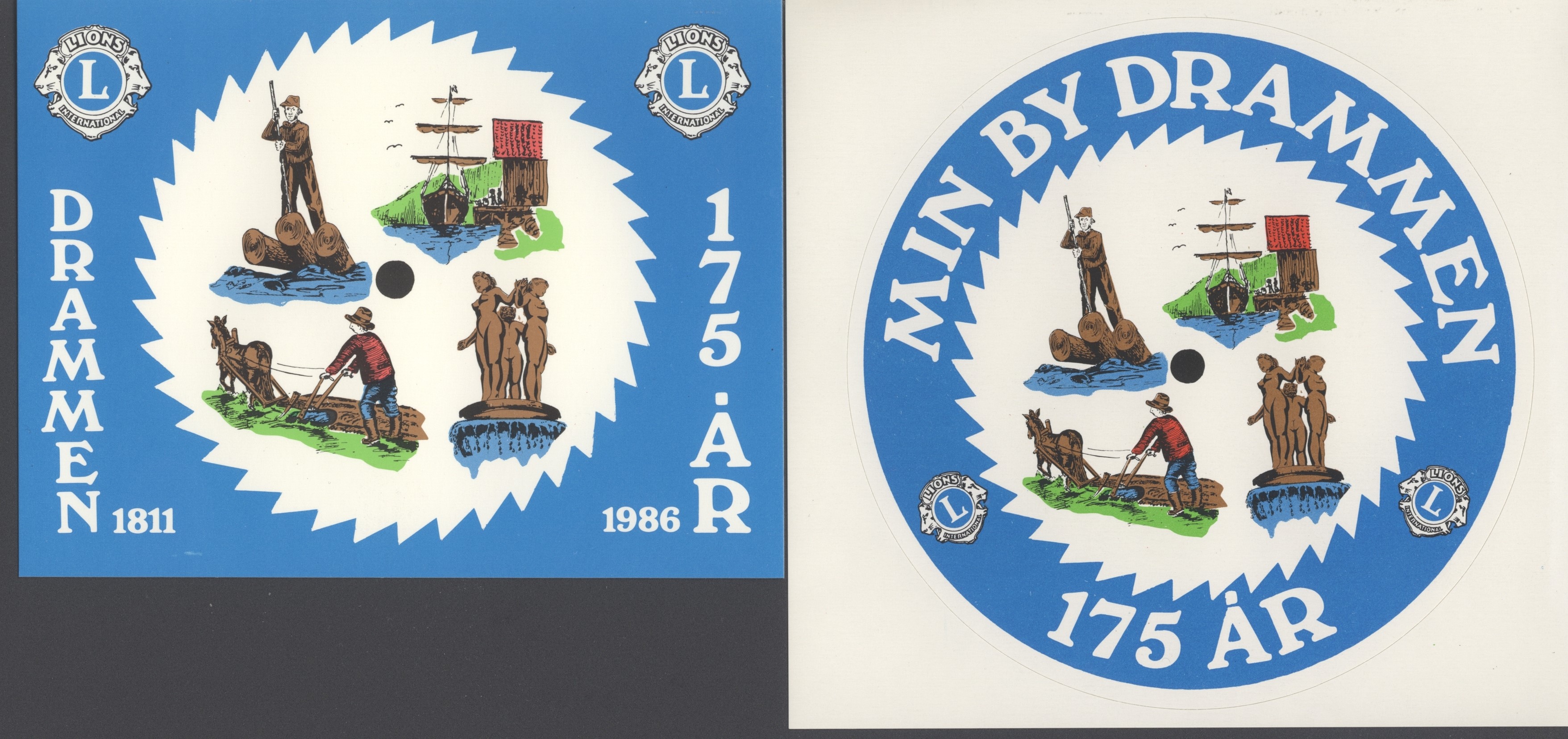 “Jubileumsmerke 1986, Drammen 175 år,” Skoger og Konnerud historielags bildesamling, besøkt 26. februar 2026, https://www.skhist.nettsidetesting.no/items/show/5085.