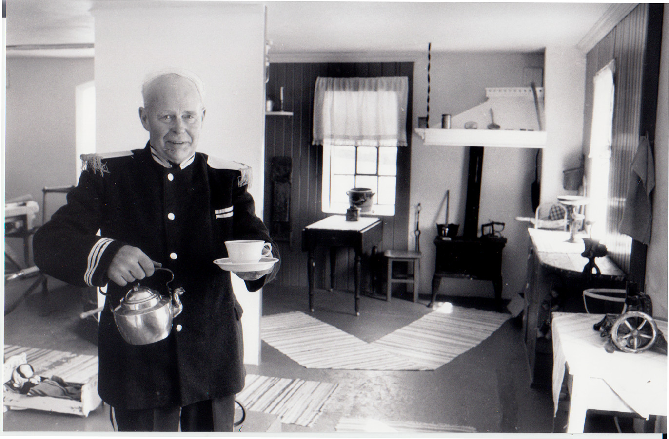 Jørgen Borge på kjøkkenet i Bygdesamlingen ca 1990