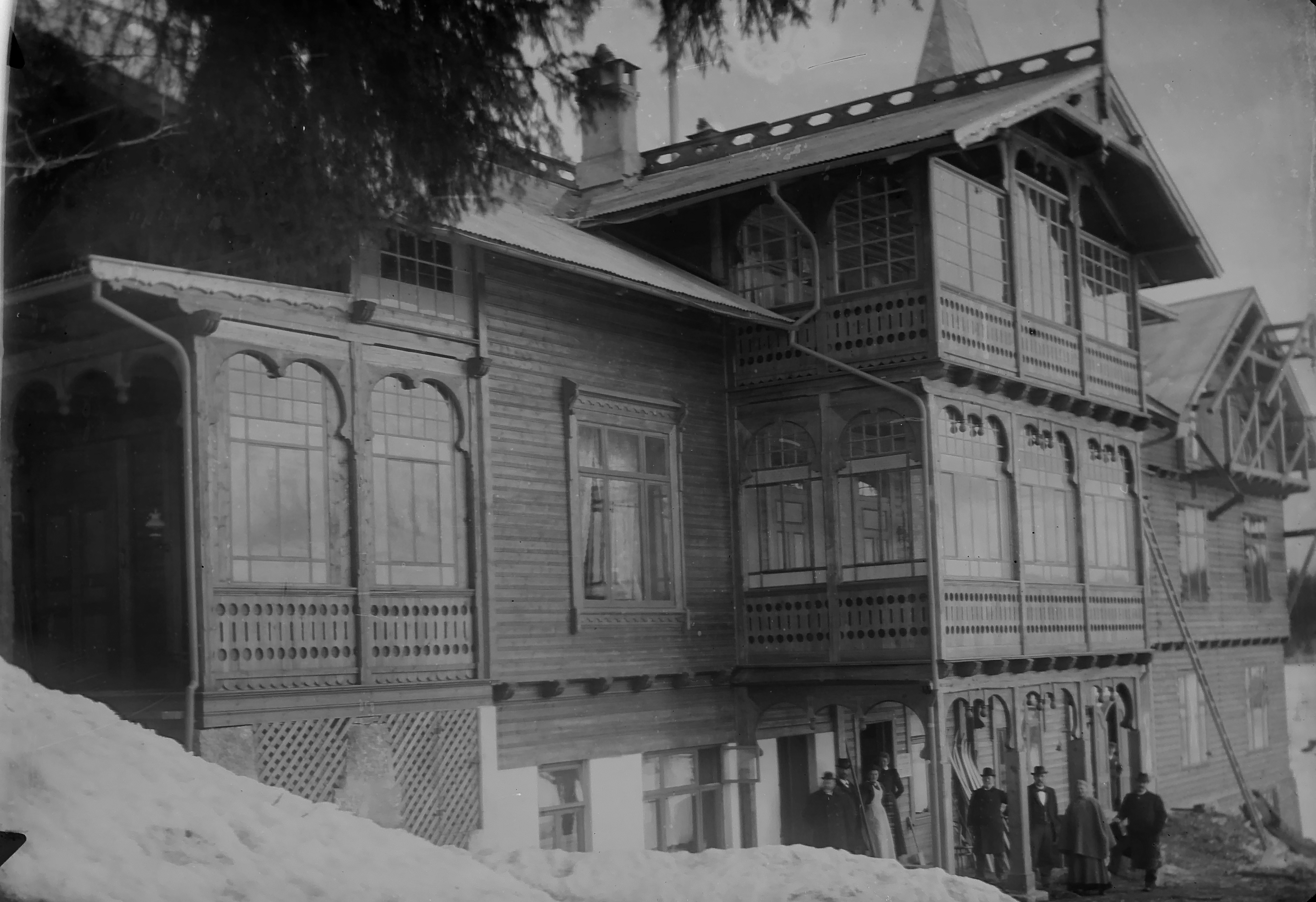 Bilde fra Konnerudkollen Sanatorium fra tidsrommet 1898 til 1920. Orginalen er på glassplate og er eid av Harald Øhlckers.