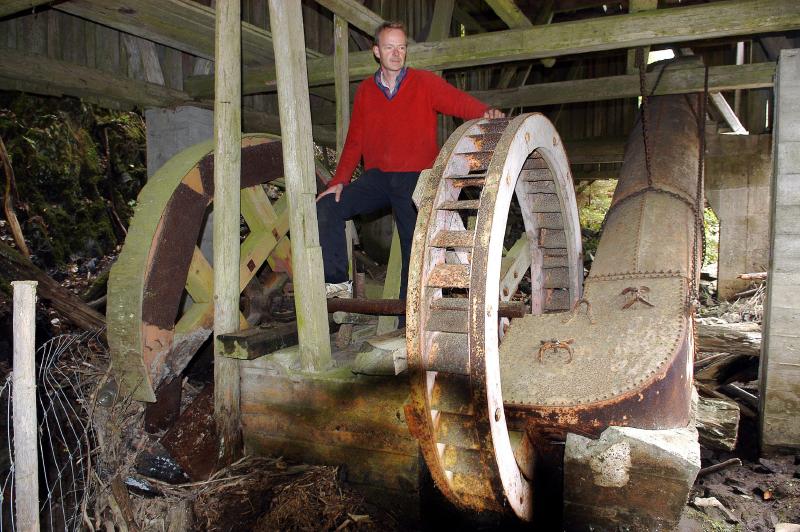 Nils Borge, Vestre Borge ved vannhjulet i Borgesaga som ligger ved bremsa. Ved full drift har vannhjulet en effekt på 40 hk, Les mer i Historielagsnytt nr. 1 2007.