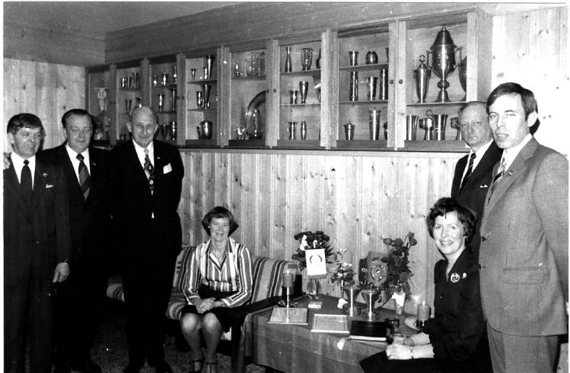 Fra venstre Olaf Nilsen (1922-2004), Helge Skjelsbæk(1927-1997), Ann Skjelsbæk ?, Sigrid Løvås, Ola Heggen og Gunnar Løvås.
