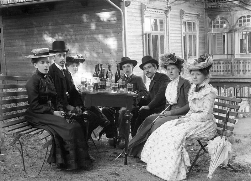 Glassplaten er skannet og behandlet av Fotohuset, Drammen. Venner på tur til Konnerudkollen Turisthotell - 1910 Synnøve Gulbrandsen - Bernhard Haugen - Gunda Haugen - Hakon Hagen - Ludvig Nilsen - Anna Sjønnesen - Lina Larsen. Konnerud Sanatorium ble bygget på gården Eskerud i 1896. Byggherre var: Grosserene Brecke, Rudolp og Andresen. Senere overtatt av hotelleier Jens Henriksen fra Tønsberg som utvidet til hotell. Etter første verdenskrig omdøpt til Konnerudkollen Turisthotell, drift til ca. 1940. Etter krigen ble hotellet benyttet som en underavdeling av Univerisitet i Oslo for 107 norske kostholdsstudenter som studerte engelsk over to semestre. De bodde på hotellet sammen med sine lærere. Denne form for college var en ny form for universitet i Norge. Kort varighet, fordi hotellet ble solgt til Europahjelpen i 1949 som mottaksstasjon for flyktninger .Siden brukt til kursted. Hotellet ble ombygd til det ugjenkjennelige i 1950. Staten overtok hotellet vedrlagsfritt i 1951 og det ble brukt som en underavd. til Lier sykehus i 1956. Hotellet brant sommeren 1967.