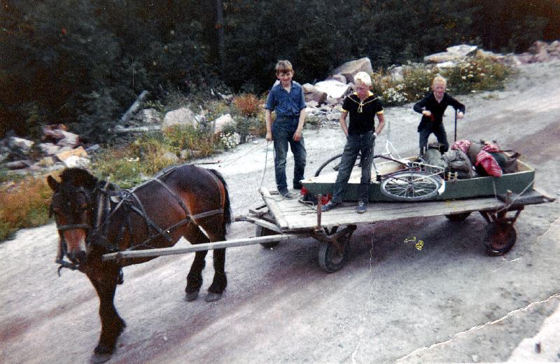 På bildet sitter Knut Ramnæs 4 år og Hans Jørgen på ryggen til Linnumen.