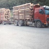 Isaksen lasteapperat er i bruk for å vinsje tømmret opp på lastebilen. Dette var til stor lettelse i arbeidet, for tidleger mått en håndtrille tømmret opp på bilen. Det kunne vere svert tongt. Sjåfør: Reidar Kristoffersen. Bilen er en GMC fra 2. verdenskrig. Takk til Asle Wang, Motorhistorissk Klubb Drammen, for opplysninger om bilen.